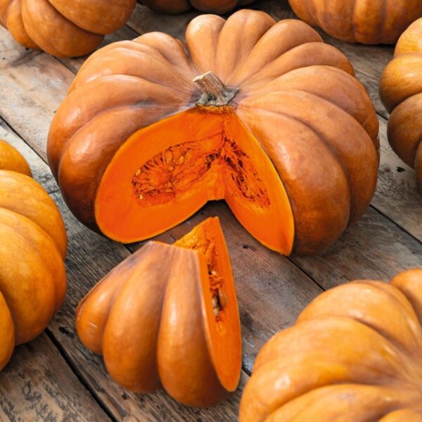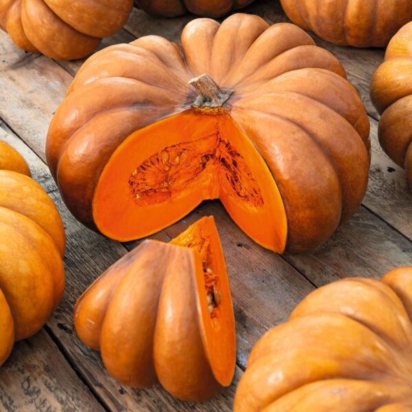 Variedade de crescimento forte, com frutos achatados, redondos e com nervuras, de polpa alaranjada. Crescimento e amadurecimento lentos. Aconselhada a colheita depois da cor da casca mudar para castanho-ocre.